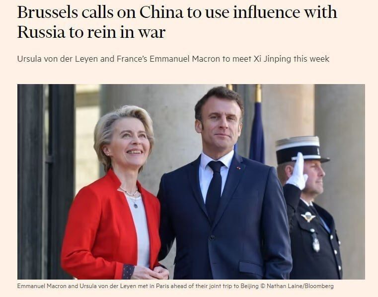 Bà nhấn mạnh Trung Quốc có khả năng tác động đến Nga và phải chịu trách nhiệm về việc này. Von der Leyen cũng cho biết, mặc dù Chủ tịch Tập Cận Bình đã đến thăm Moscow vào tháng trước nhưng ông đã không gọi điện cho Tổng thống Ukraine Volodymyr Zelensky.
