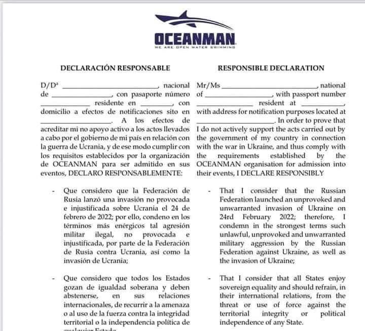 Nội dung của bản cam kết này là các vận động viên của Nga và Belarus phải lên án chính phủ của họ đã tiến hành 'cuộc chiến tranh xâm lược Ukraina'.