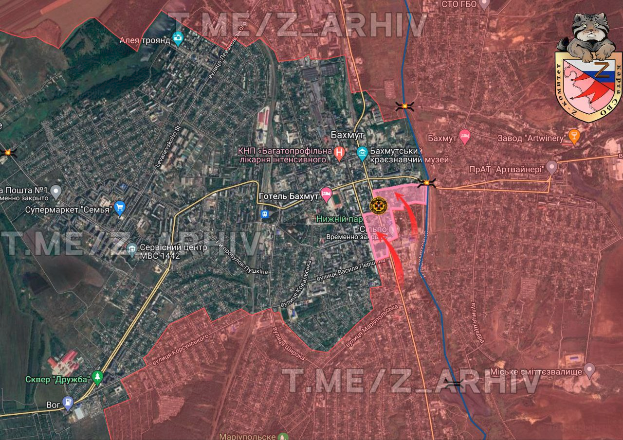 Tình hình tại thành phố Bakhmut: Đoạn video gần đây cho thấy những bước tiến mới nhất của Quân đội Nga đã chính thức tiến vào trung tâm thành phố. Bây giờ quân đội đđóng quân trong một khu vực mà họ đã thực hiện một nỗ lực vượt sông cách đây vài tuần.