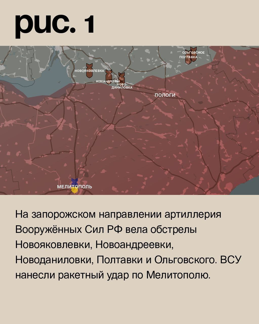 Trên hướng Zaporozhye, pháo binh của Lực lượng Vũ trang Liên bang Nga đã bắn vào Novoyakovlevka, Novoandreevka, Novodanilovka, Poltavka và Olgovsky. APU đã phát động một cuộc tấn công tên lửa vào Melitopol. (Hình 1)