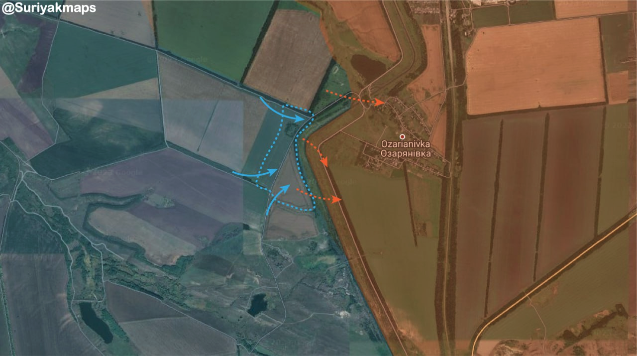 Tình hình phía nam Bakhmut: Quân đội Ukraine mở cuộc phản công và đẩy lui Quân đội Nga khỏi phía tây của kênh nước tiếp giáp với thị trấn Ozarianivka/Озарянівка.