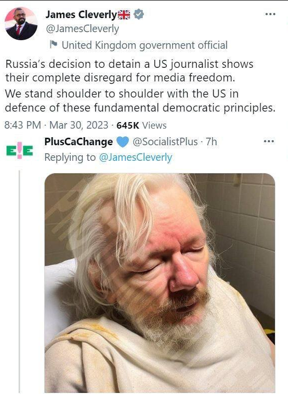 Ngoại trưởng Anh chém trên tuýt: Quyết định của Nga bắt giữ một nhà báo Mỹ chứng tỏ sự coi thường hoàn toàn của Matxcơva đối với ý tưởng tự do báo chí và xem nhẹ việc Anh kề vai sát cánh với Hoa Kỳ trong sự nghiệp bảo vệ nguyên tắc dân chủ cơ bản này