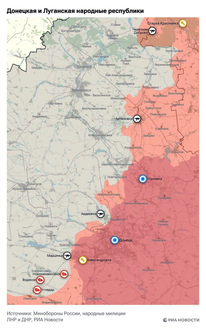 Ở hướng Donetsk, Lực lượng vũ trang Ukraine đang củng cố vị trí của họ. Các lô đạn dược mới được chuyển ra tiền tuyến, nhiên liệu được cấp với số lượng hạn chế do thiếu nguồn cung cấp nhiên liệu và dầu nhờn. Đồng thời, quân tiếp viện dự kiến sẽ được chuyển đến từ các khu vực khác của mặt trận.
