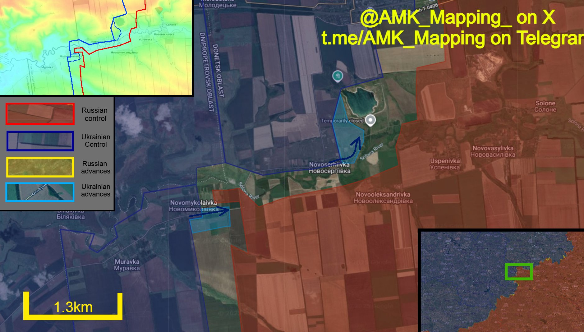 Ở phía đông bắc, lực lượng Ukraine đã đẩy lực lượng Nga ra khỏi làng Novoserhiivka, buộc họ phải rút lui về các vị trí ở phía tây bắc làng Uspenivka. Sau đó, lực lượng Ukraine đã chiếm lại các vị trí ở các ngôi nhà phía đông của Novoserhiivka.