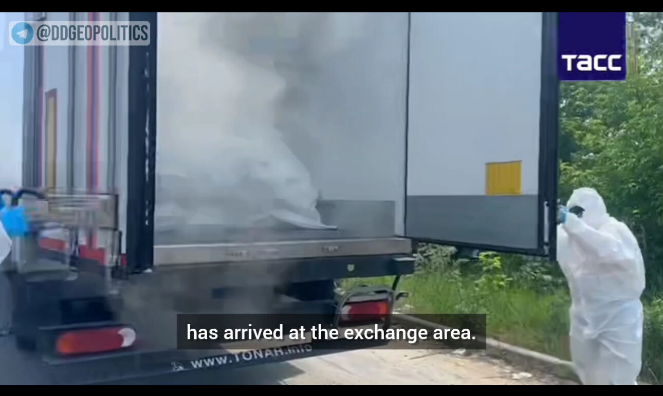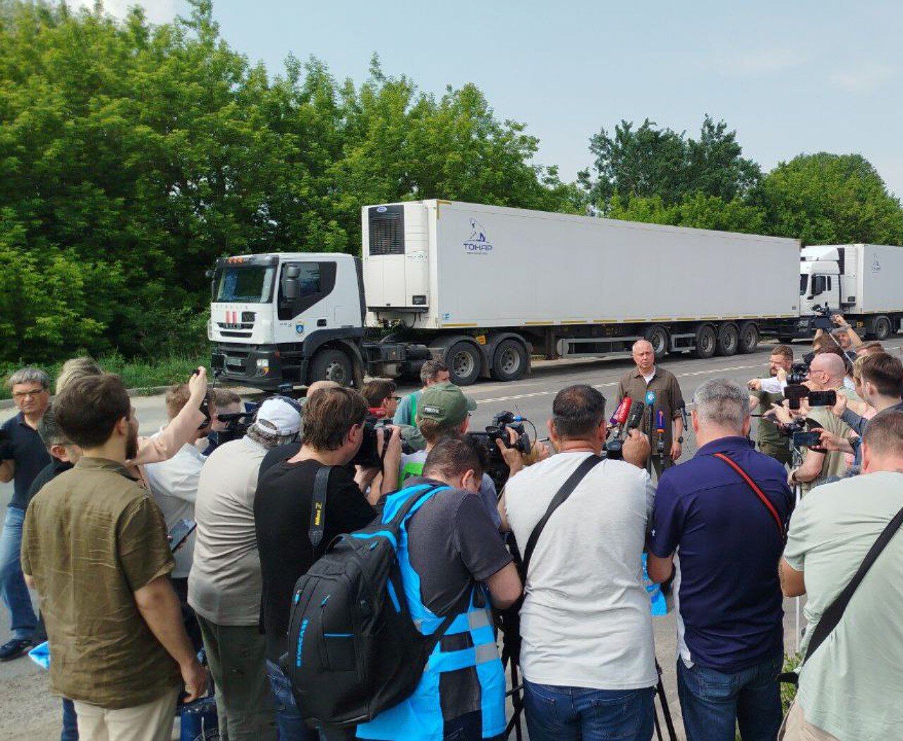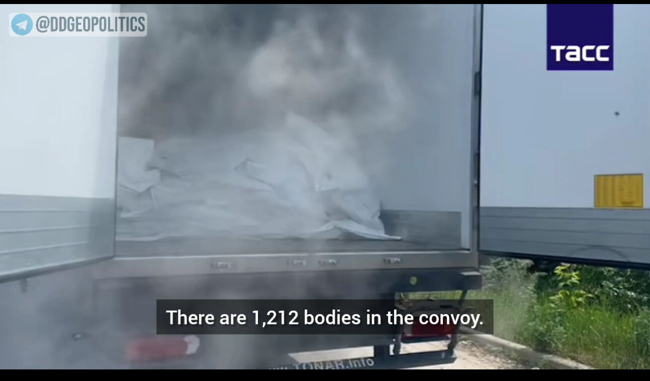 Đoàn xe đầu tiên mang 1212 thi thể trong xe lạnh đến nơi quy định nhưng k có đại diện Ukr đến tiếp nhận.