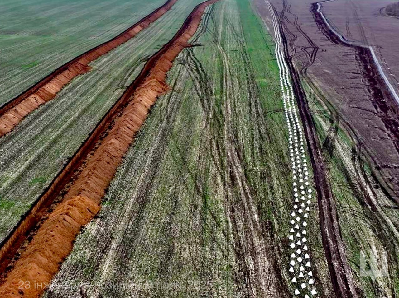 Cấu trúc kỹ thuật của hàng răng rồng, hào chống tăng của Lực lượng vũ trang Ukraine. Mô hình chướng ngại vật năm 2025. Thi công tháng 5/2025. Cũng ra gì và này nọ phết!
