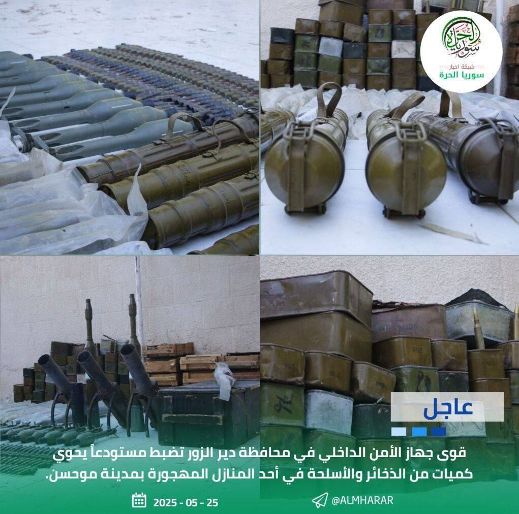 Truyền thông Syria đưa tin lực lượng an ninh đã thu giữ một khu nhà bỏ hoang chứa đầy vũ khí và đạn dược ở thị trấn Mohsen thuộc vùng Deir ez-Zor phía đông như một phần của chiến dịch nhằm phát hiện tàn tích hoạt động của lực lượng dân quân thân Iran tại nước này dưới thời chế độ Assad.