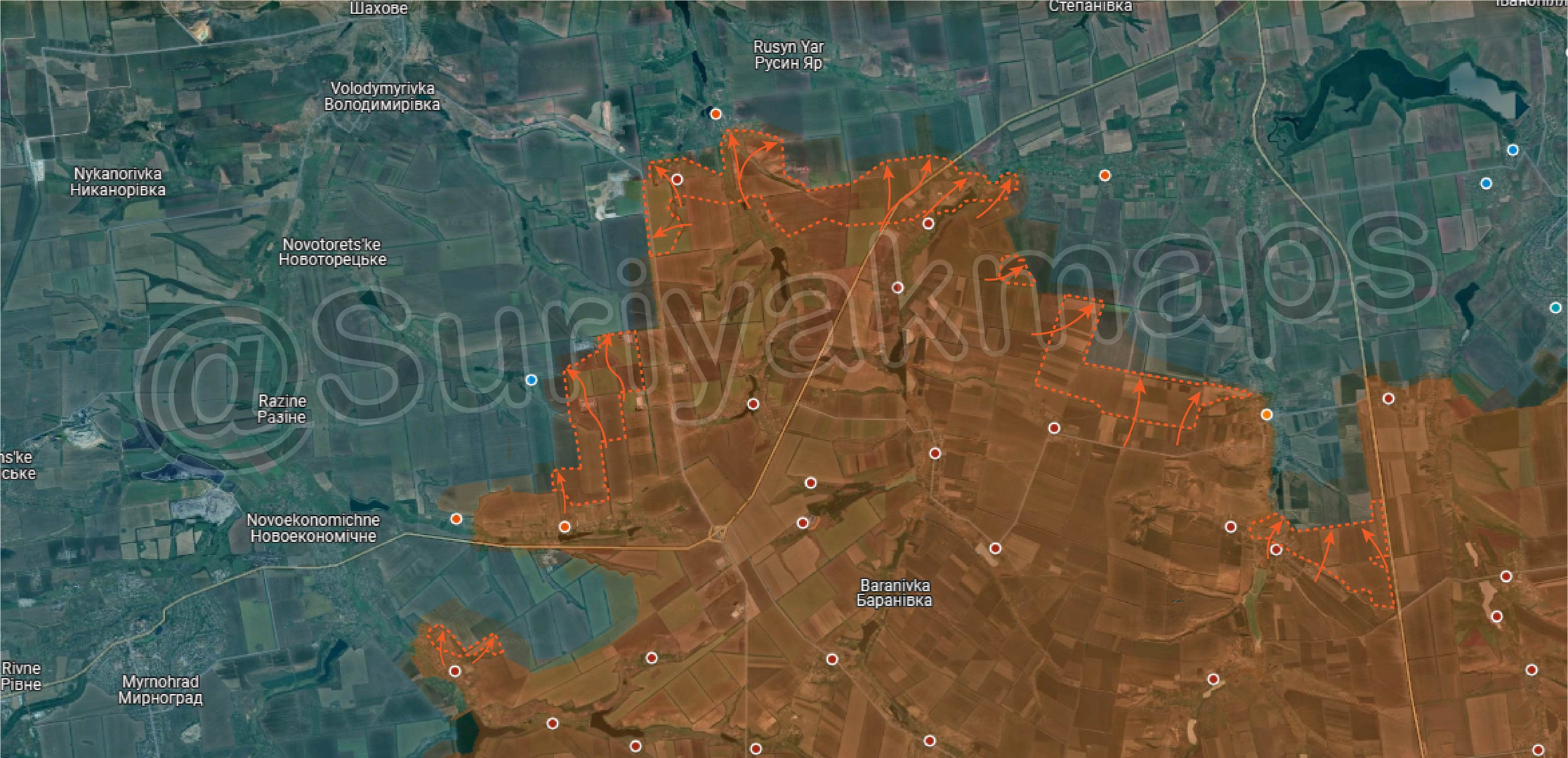 Tình hình mặt trận Pokrovsk: Trong năm ngày qua, #Quân đội Nga đã chiếm được một số vị trí ở phía tây Bohdanivka. Mặt khác, đã xác nhận rằng #Quân đội Ukraine cuối cùng đã chiếm lại được địa điểm Horikhove & những ngôi nhà cuối cùng của Troitske, nơi đang diễn ra các cuộc đụng độ. Ngoài ra, các nhóm trinh sát Nga đang cố gắng củng cố ở biên giới với tỉnh Dnipropetrovsk.