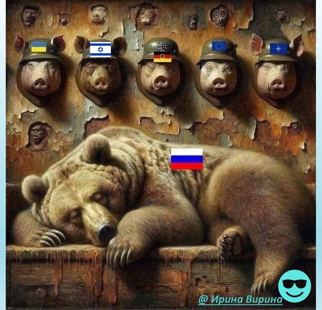 Ý nghĩa rất rõ ràng. Con gấu Nga chỉ có thể yên tâm ngủ ngon khi treo hết đầu của bằng ấy con lợn lên.