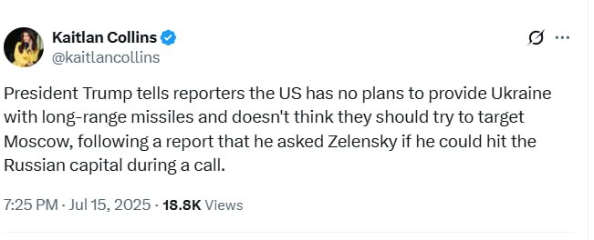 ▪️Sau cuộc gặp với Tổng Thư ký NATO Mark Rutte tại Nhà Trắng, Tổng thống Mỹ cho biết Ukraine sẽ sớm nhận được 17 hệ thống Patriot từ một quốc gia hiện không cần đến chúng. Tuy nhiên, không rõ tuyên bố của Trump có ám chỉ đến toàn bộ hệ thống hay không.