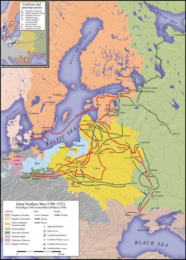 Trong Đại chiến Bắc Âu đầu thế kỷ 18, nước Nga dưới thời Peter Đại đế đã phải đối mặt với tư duy quân sự của thời đại - Charles XII của Thụy Điển. Những năm đầu của cuộc chiến không mấy suôn sẻ với Nga, với thất bại tan nát tại Narva năm 1700 và sự thất bại thảm hại của các đồng minh ở Ba Lan và Sachsen trước quân Thụy Điển trong nhiều năm sau đó. Tuy nhiên, vào năm 1708, Charles XII quyết định giải quyết dứt điểm vấn đề với người Nga và đưa quân đội của mình tiến vào nội địa Nga. Ông không hề biết rằng đó chính là đỉnh cao của quốc gia Thụy Điển - quân đội đã gặp phải số phận bi thảm tại Poltava ở Ukraine vào năm 1709 và kết cục của cuộc chiến đã được định đoạt trước.