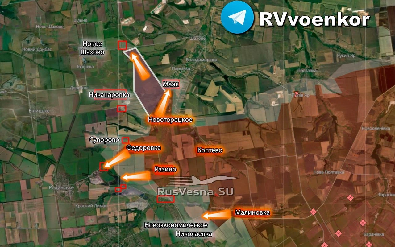 Theo các báo cáo thực địa, quân đội Kiev đang rút lui khỏi làng Zverovo gần Krasnoarmeysk và rút về các vị trí tại các khu định cư Pervoye Maya (Pershe Travnya) và Roza (Troyanda) ở ngoại ô.
