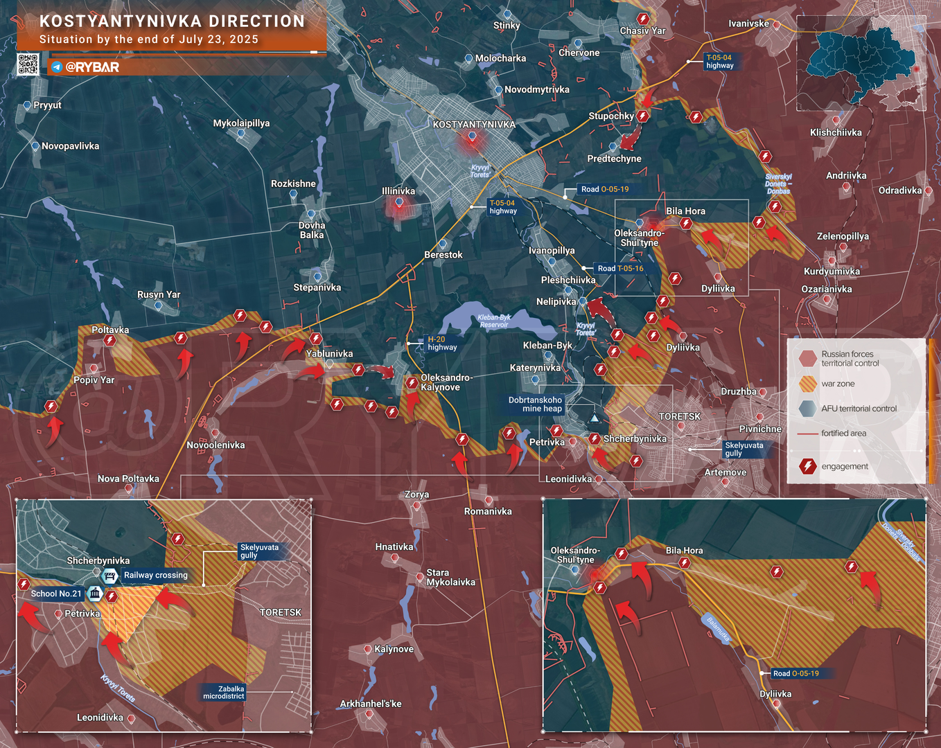 Theo hướng Konstantinovsky, quân đội Nga đang chiến đấu ở vùng ngoại ô phía tây bắc Dzerzhinsk và tiến vào Shcherbinovka.