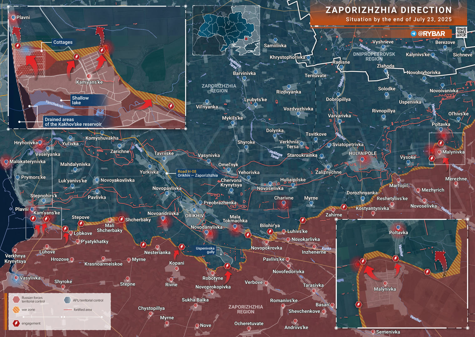Theo hướng Zaporizhzhya, Lực lượng Vũ trang Nga đang chiến đấu ở phía bắc Kamenskoye, dần dần mở rộng vùng kiểm soát trên các tuyến đường tiếp cận Plavni.
