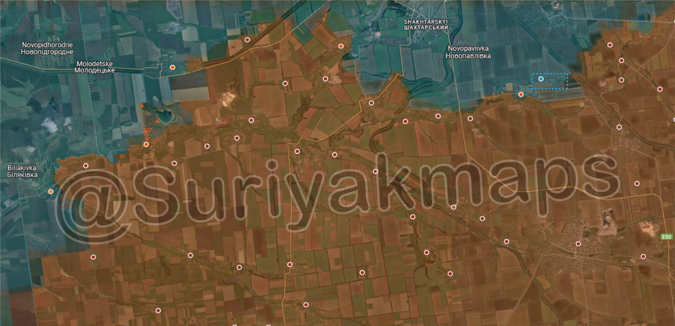 Tình hình mặt trận Pokrovsk: Trong bốn ngày qua, Quân đội Nga đã chiếm được một số vị trí ở trung tâm Novoserhiivka và đang cố gắng tiến xa hơn về phía bắc. Mặt khác, tình hình xung quanh Sukhyi Yar đã được làm rõ, qua đó xác nhận địa phương này nằm dưới sự kiểm soát của Quân đội Ukraine từ vài tháng trước.