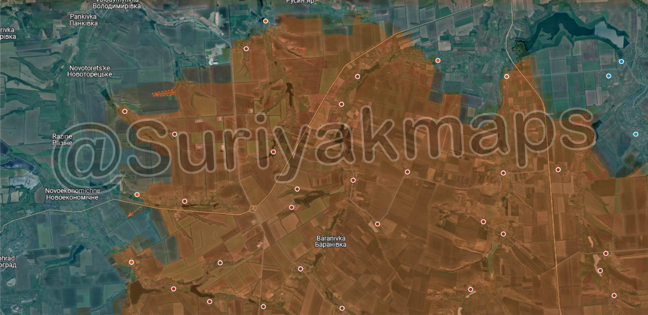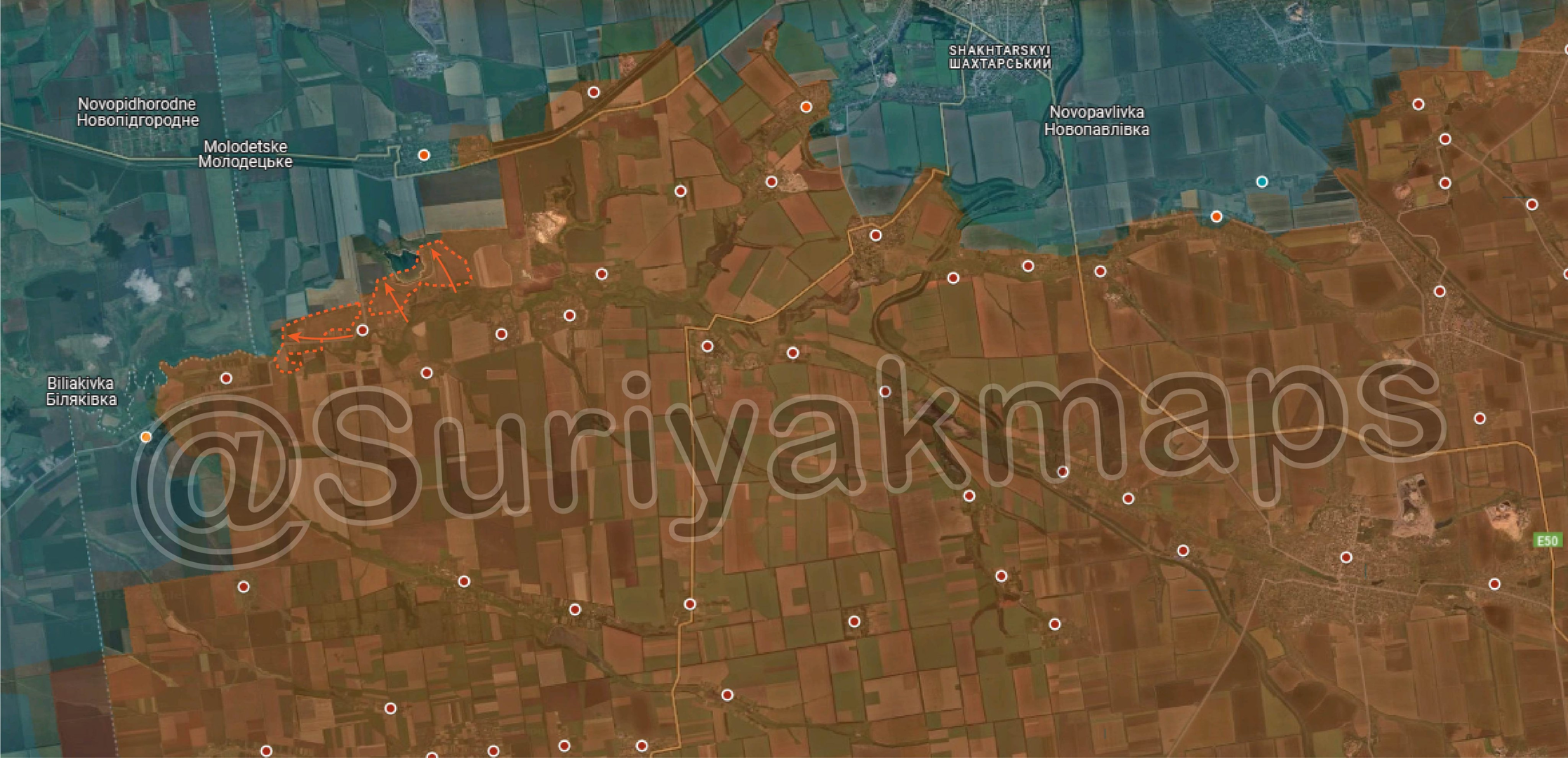 Phần phía bắc của ngôi làng đã bị chiếm đóng, theo báo cáo của quan sát viên quân sự Yuri Podolyaka: Sự kháng cự có tổ chức ở đây đã phần lớn bị đàn áp. Nhưng máy bay không người lái của địch vẫn tiếp tục ngăn chặn không cho nó bị chiếm đóng hoàn toàn và biến thành căn cứ cho những cuộc tiến công tiếp theo.