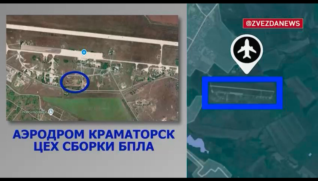 💥Khoảnh khắc cuộc tấn công vào xưởng tại sân bay Kramatorsk — máy bay không người lái đã được lắp ráp tại đây. Đối tượng đã bị tấn công bởi "Geraniums".