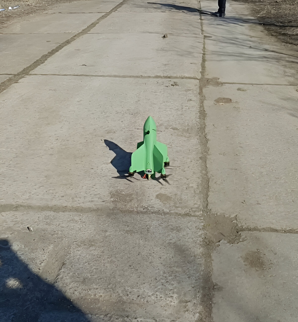 Do đó, do khí động học chính xác với cùng một động cơ và pin, nó bay xa hơn gấp hai đến ba lần và nhanh hơn nhiều. Tầm bay tối thiểu là 50 km, tốc độ là 280 km/h. Ở tốc độ như vậy, về mặt vật lý, không thể bắn hạ nó bằng vũ khí hạng nhẹ.