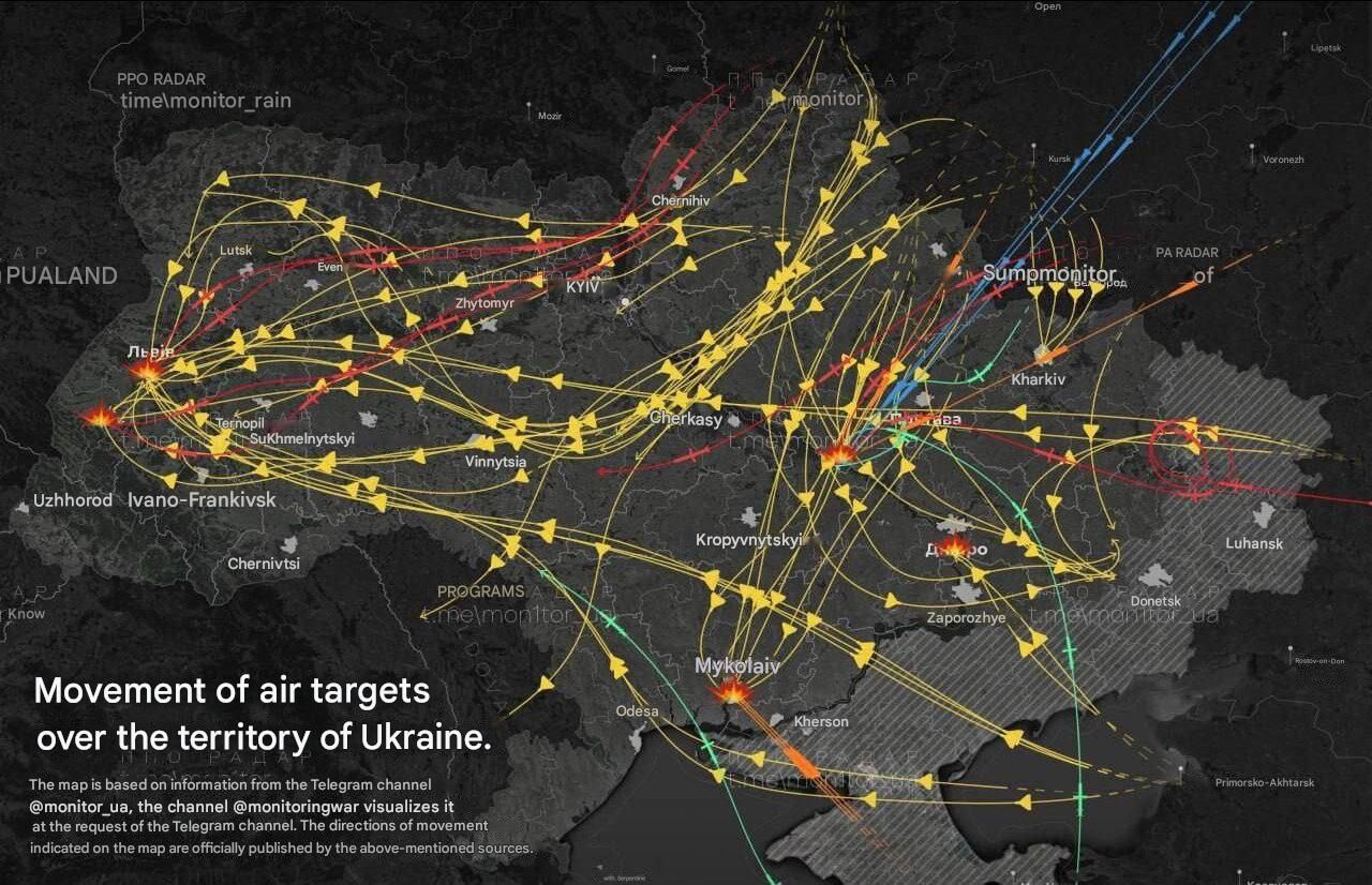 (Ảnh sơ đồ các cuộc không kích đêm qua ở Ukraina trích từ nguồn của Ukraina).