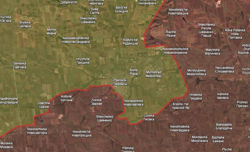 Theo một số thông tin từ phía Ukraine, các đơn vị UAV và lực lượng điều chỉnh hỏa lực (PAN) của Nga đã tập trung nỗ lực chính vào hướng Hryshyne — một tuyến đường tiếp tế quan trọng mà trước đây đạn dược và vật tư được chuyển đến nhóm Pokrovsk và các nhóm Ukraine tấn công Rodynske từ phía họ. Đồng thời, các cuộc không kích và pháo binh ở ngoại ô Myrnohrad đang gia tăng — tại đó, Lực lượng Vũ trang Ukraine đang bắt đầu công tác khẩn cấp để củng cố các công sự phòng thủ còn lại, nhưng tính sẵn sàng của các vị trí còn thấp, và trong bối cảnh các cuộc tấn công ồ ạt của FAB-500, khả năng giữ vững phòng tuyến lâu dài là rất khó xảy ra.