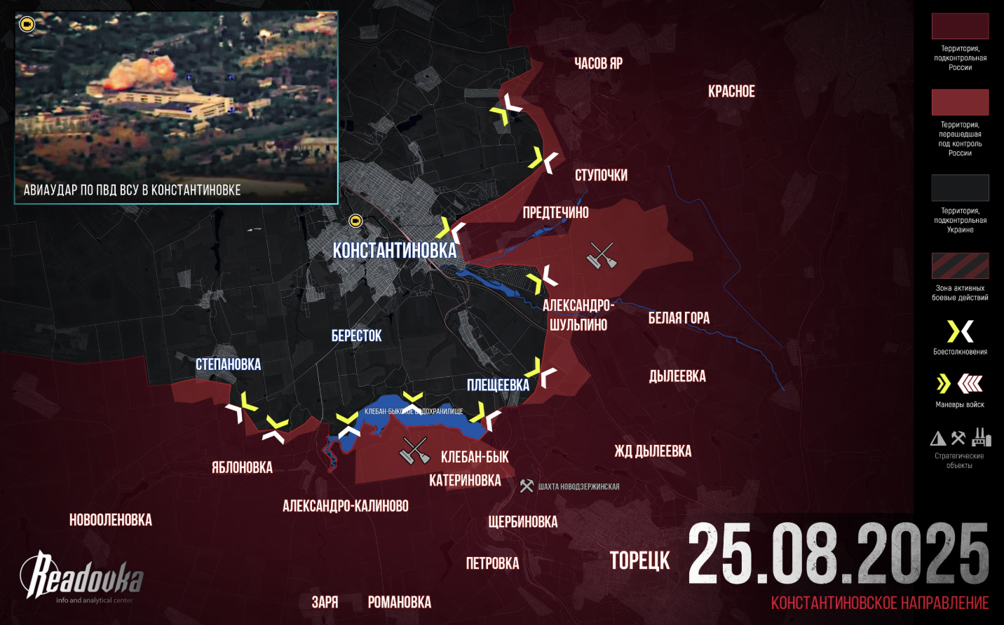 Lực lượng Vũ trang Nga đang hoàn tất việc dọn dẹp hai "ổ dịch" phía nam và phía đông Konstantinovka — phần lớn sự kháng cự đã bị dập tắt. Nhờ đó, quân đội chúng ta đã giải phóng được lực lượng đáng kể và bắt đầu chuẩn bị cho một cuộc tấn công vào thành phố.