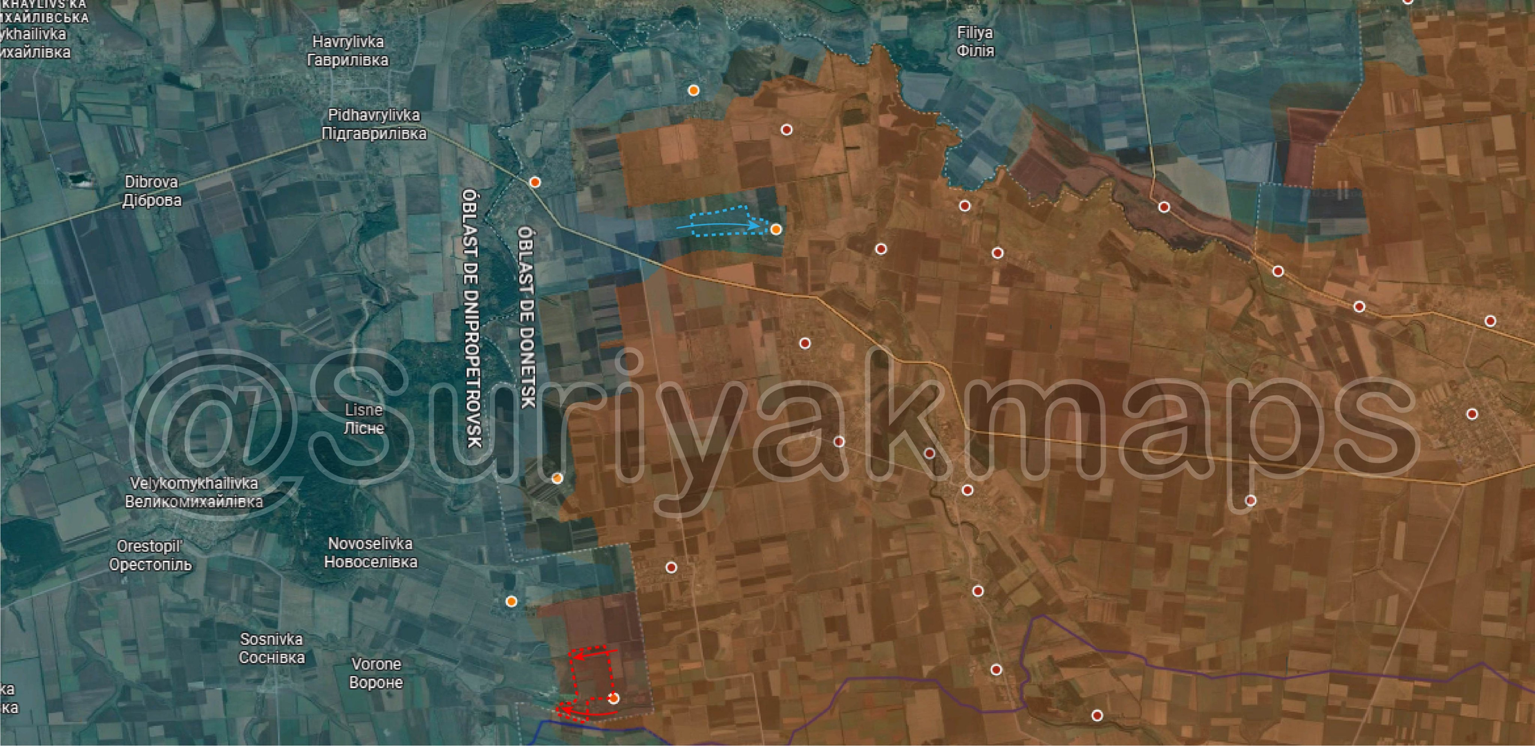 Một tình hình biến động ⚡️ đang diễn ra ở phía nam Tỉnh Donetsk, trên biên giới với Tỉnh Dnipropetrovsk 🗺. Trong khi Bộ Quốc phòng Nga báo cáo những thắng lợi tiếp theo tại Dnipropetrovsk 📈, theo thông tin hiện có, cả hai bên đều đang giành được lãnh thổ theo hướng Novopavlivka ⚔️.