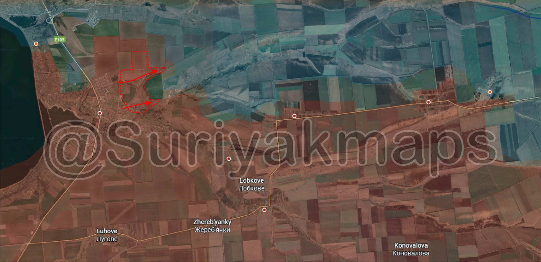 Họ cũng có thể tiến về phía nam từ đường cao tốc, dọc theo bờ đông sông Loknya, và chiếm lại các vị trí đã mất trước đó trong khu dân cư tại đó. Quân đội Nga đã có thể tiếp cận phần đông nam của ngôi làng, nhưng không thể củng cố lại. Hiện tại, phần còn lại của ngôi làng nằm trong vùng xám.