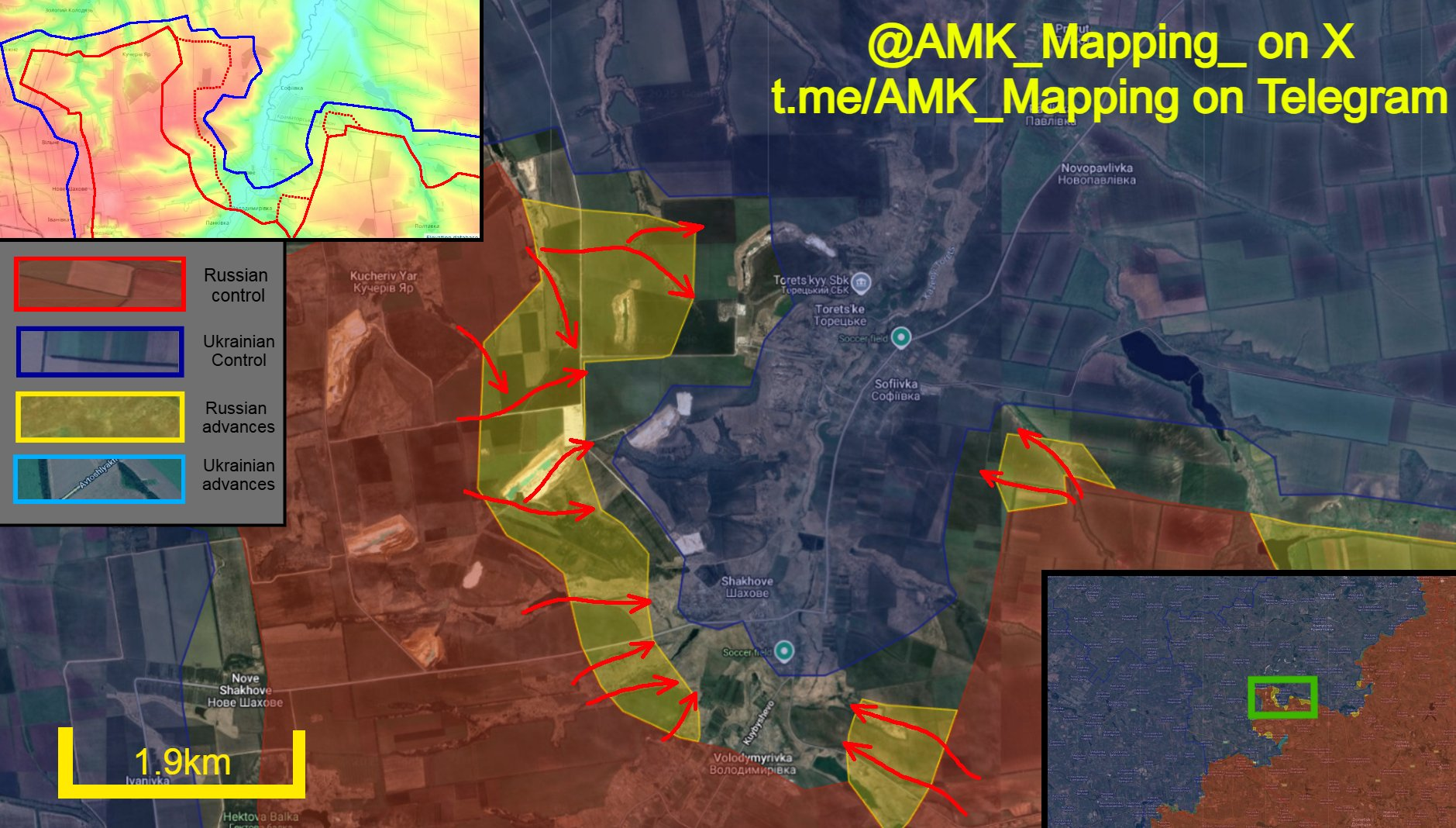 Quân Nga đã có thể tiếp nối những bước tiến trước đó ở các khu vực Kucheriv Yar và Pankivka, tiến về phía đông trên một mặt trận rộng, chiếm được các vị trí mới trong các hàng cây, đồn điền rừng, mỏ đá và rừng trên các cao điểm chiến thuật, tiếp cận các làng Shakhove và Toretske.