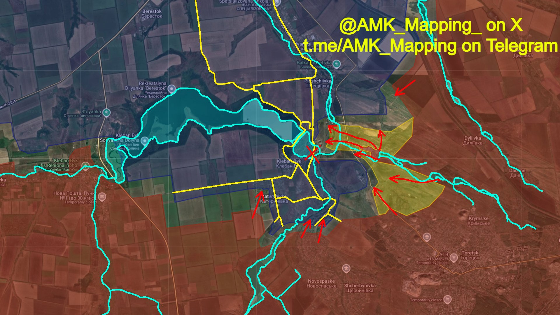Quân đội Nga đã đột phá được từ khu vực terykon được phòng thủ nghiêm ngặt tại Mỏ St. Matrona, cắt đứt tuyến đường sắt đến Shcherbynivka và chỉ còn cách 800 mét nữa là cắt đứt hoàn toàn quân đội Ukraine trong khu vực phía nam hồ chứa Kleban-Bykske.