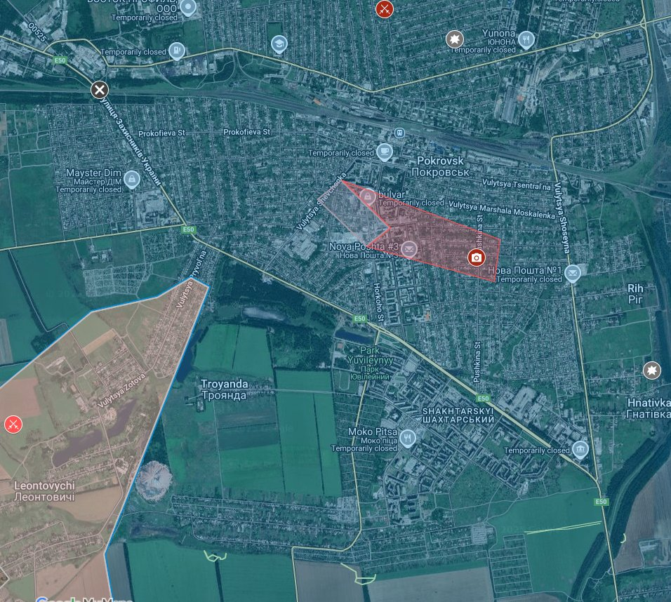 Chiến tranh Ukraine-Nga. Ngày 1260: Tình hình mặt trận Pokrovsk: Trong hai ngày qua, Quân đội Nga đã kiểm soát vùng lãnh thổ phía tây quận Zelenivka và chiếm được phần lớn vùng ngoại ô Leontovychi. Ngoài ra, trong vài tuần qua, các cuộc giao tranh ác liệt vẫn tiếp diễn tại Udachne, nơi quân đội Nga đang cố gắng tiến vào khu vực từ phía nam.