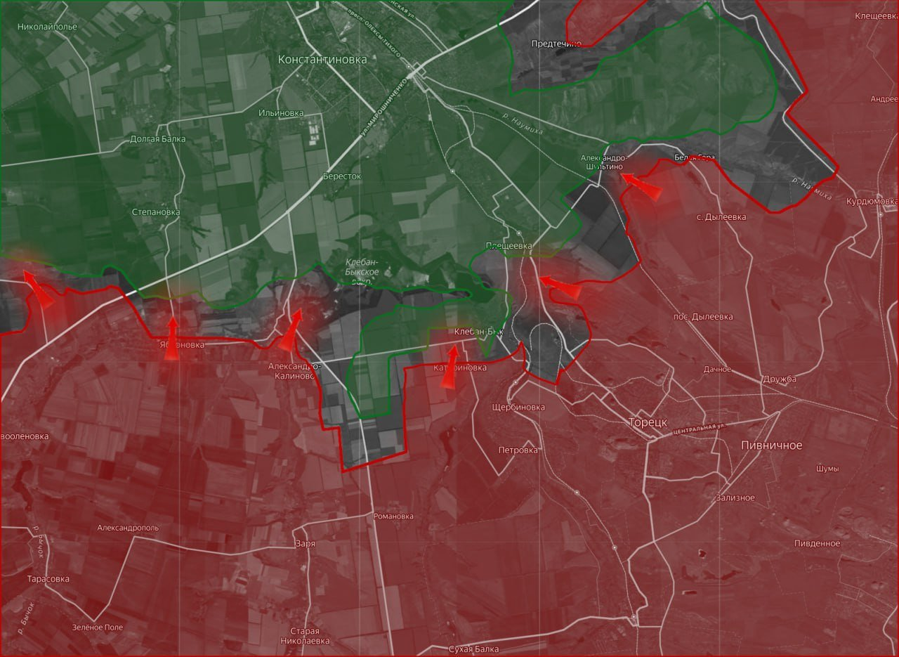 Về hướng Toretsk, quân đội Nga đã tiến về phía tây Poltavka và chiếm được một phần các cao điểm chủ chốt gần mỏ đá. Điều này tạo áp lực lên các vị trí của Ukraine ở phía bắc Rusyn Yar.