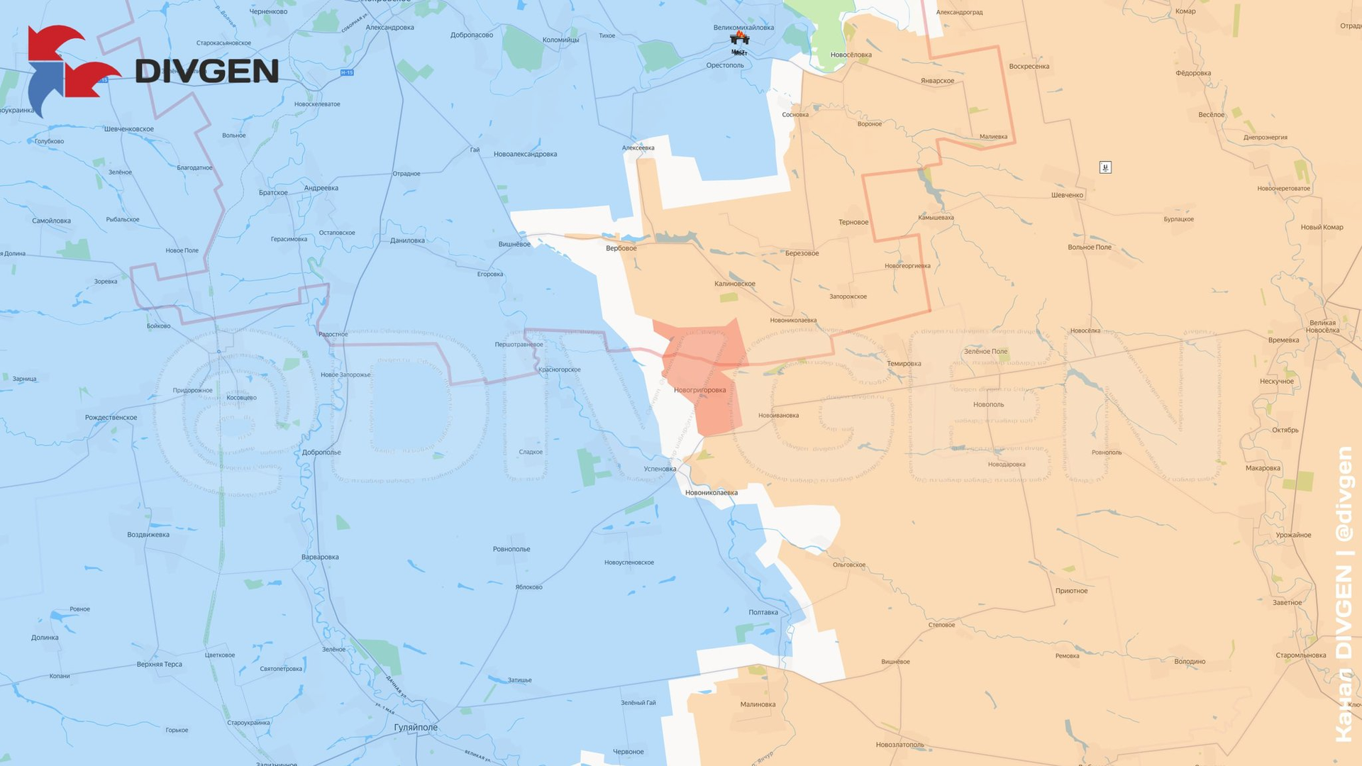 🚩 Vùng Zaporizhzhia. Tiểu đoàn bộ binh cơ giới 394 và Lữ đoàn bộ binh cơ giới độc lập 60 của Tập đoàn quân số 5 đã chiếm Novohryhorivka ở huyện Huliaipole.