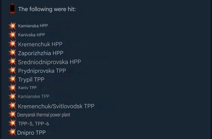 Danh sách các cơ sở năng lượng mà Ukraine cho là bị Nga tấn công đêm qua.
