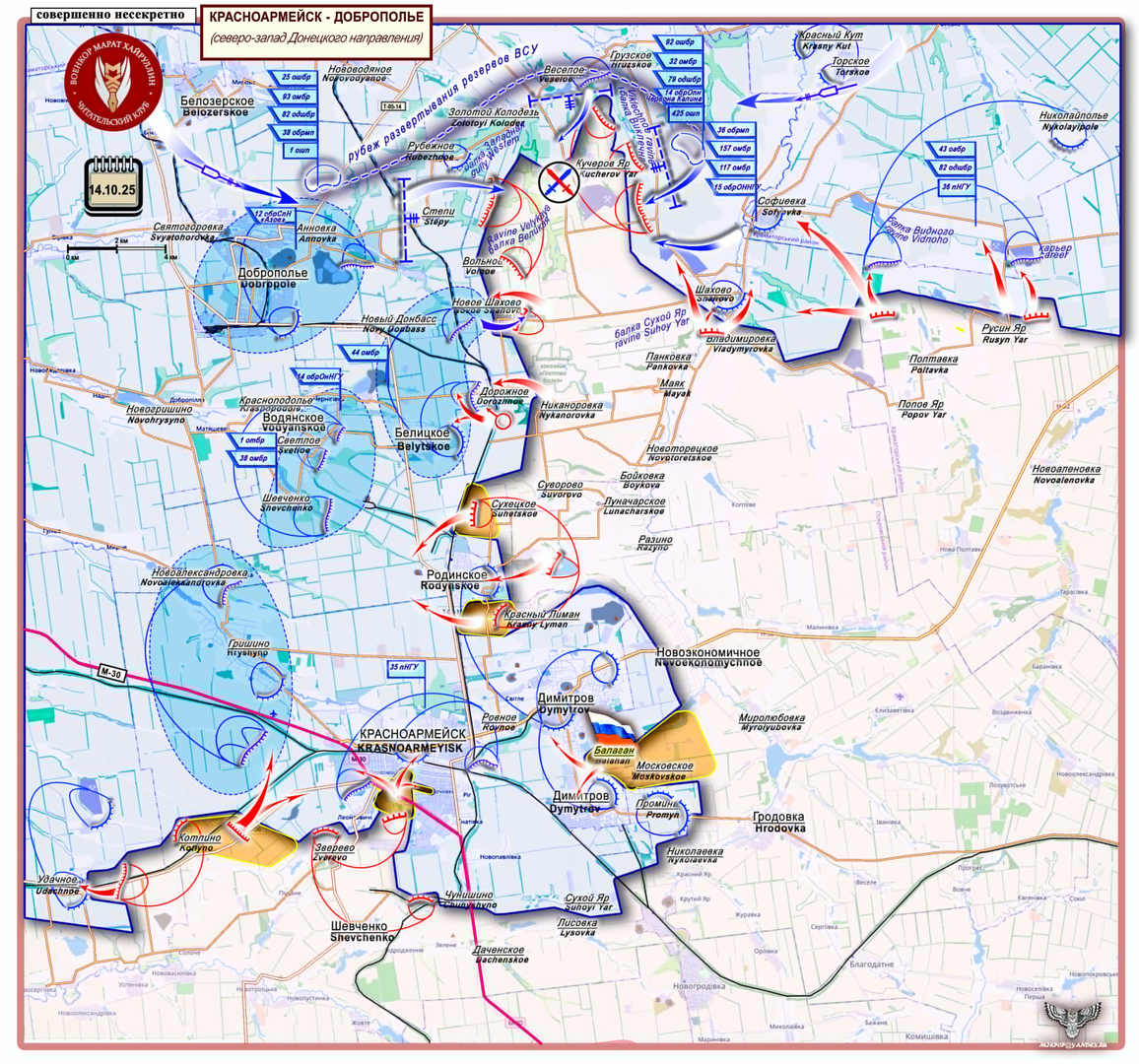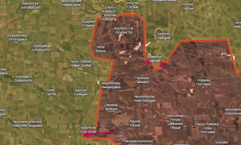 Cùng lúc đó, về phía bắc, việc bao vây khu định cư kiểu đô thị Rodinskoe đang được hoàn tất, và sau khi chiếm được khu vực này, Krasnoarmeysk (Pokrovsk) sẽ bị cắt đứt khỏi cụm quân của Lực lượng Vũ trang Ukraine đóng ở phía bắc.