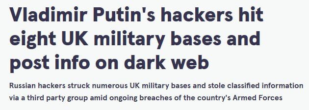 "Vụ rò rỉ thảm khốc": Tin tặc của Putin tấn công 8 căn cứ quân sự Anh — Daily Mirror