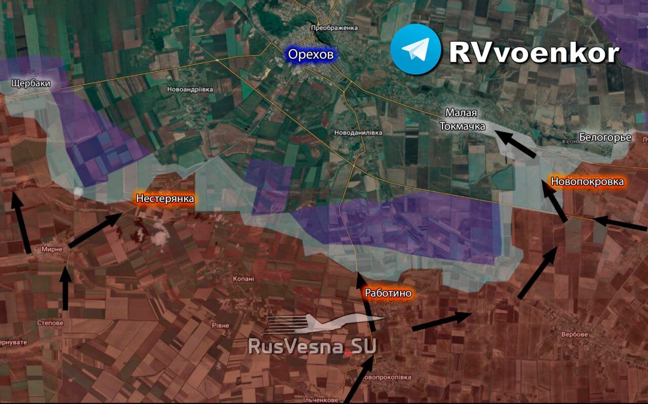 ▪️Quân đội Nga đã tiến hành các cuộc tấn công cơ giới vào ba khu vực của mặt trận Zaporizhzhia trong 24 giờ qua: ➖Đòn tấn công chính của Lực lượng Vũ trang Nga đến từ Rabotino và Novopokrovka theo hướng Malaya Tokmachka. Phần lớn các phương tiện đã đột phá vào làng nhờ hỏa lực mạnh. Bộ binh đã phân tán và bắt đầu dọn dẹp khu vực. ➖Từ khu vực Mirny, các đoàn xe khác tấn công theo hướng Nesteryanka và Shcherbaki. ➖Từ khu vực Ilchenkovo, Quân đội Nga tiến về hướng Novodanilovka - kết quả vẫn chưa được biết. "Sau những cuộc tấn công này, tình hình ở khu vực Orekhiv đang được làm rõ, và Malaya Tokmachka đã được chuyển sang vùng xám - giao tranh vẫn tiếp diễn", các nhà phân tích quân sự Ukraine cũng thừa nhận.