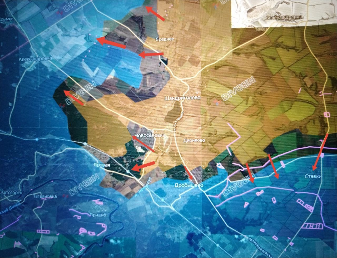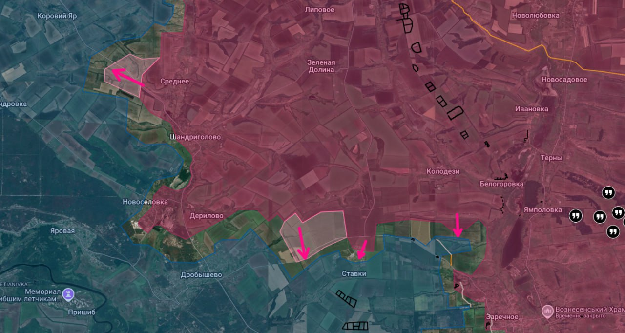 Về phía tây bắc, quân đội Nga đã tiến vào Novosyolovka, tiến đến khu rừng gần Yarovaya, cắt đứt đường liên lạc của quân Kiev về phía Drobyshevo, và bất chấp các cuộc phản công dữ dội, đang tiến về Alexandrovka và, tại khu vực Srednee, về phía Korovy Yar.