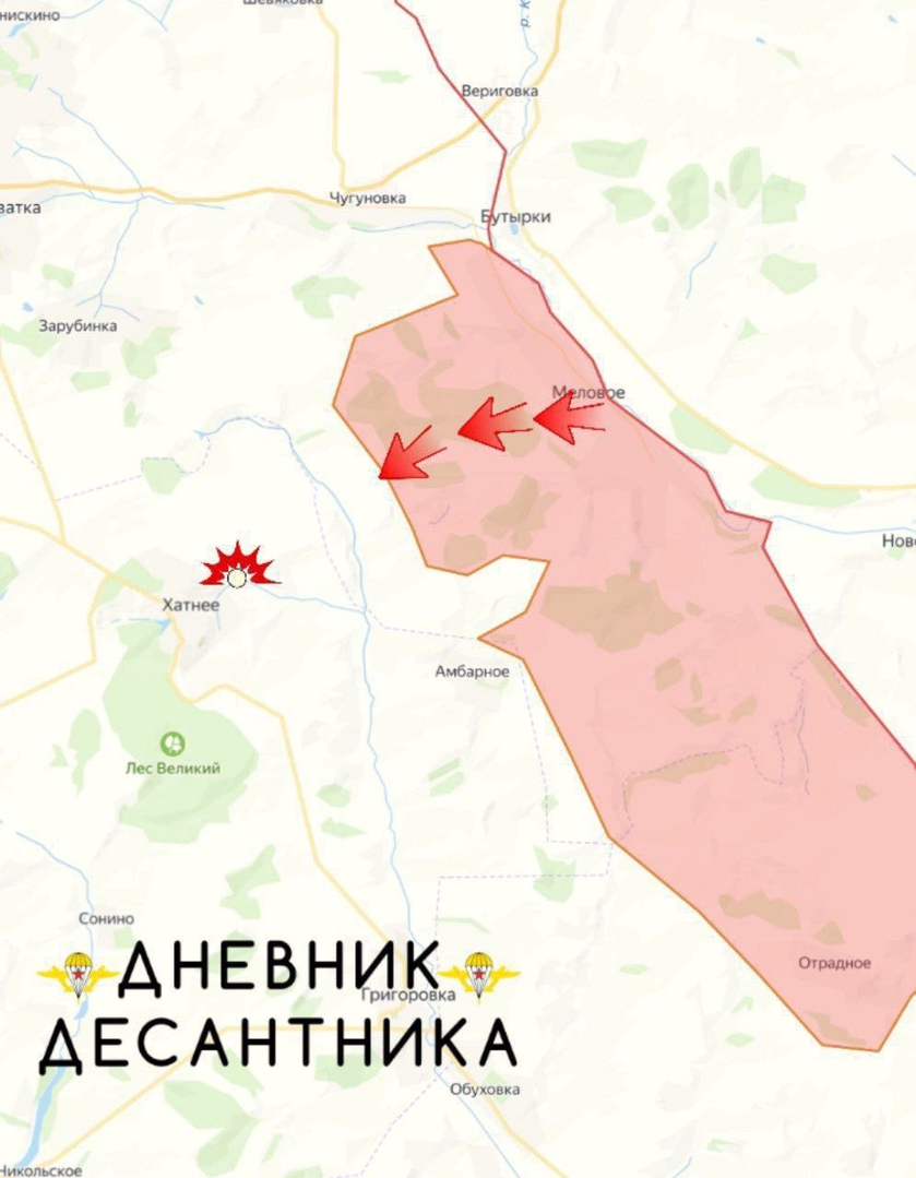 Theo hướng Velykoburluk, các đơn vị của ta đang gây sức ép lên hàng phòng thủ của Lực lượng Vũ trang Ukraine từ Melove đến Khatne, mở rộng vùng kiểm soát và hình thành một đầu cầu ở vùng ngoại ô phía bắc, bất chấp điều kiện địa hình rừng rậm khó khăn.