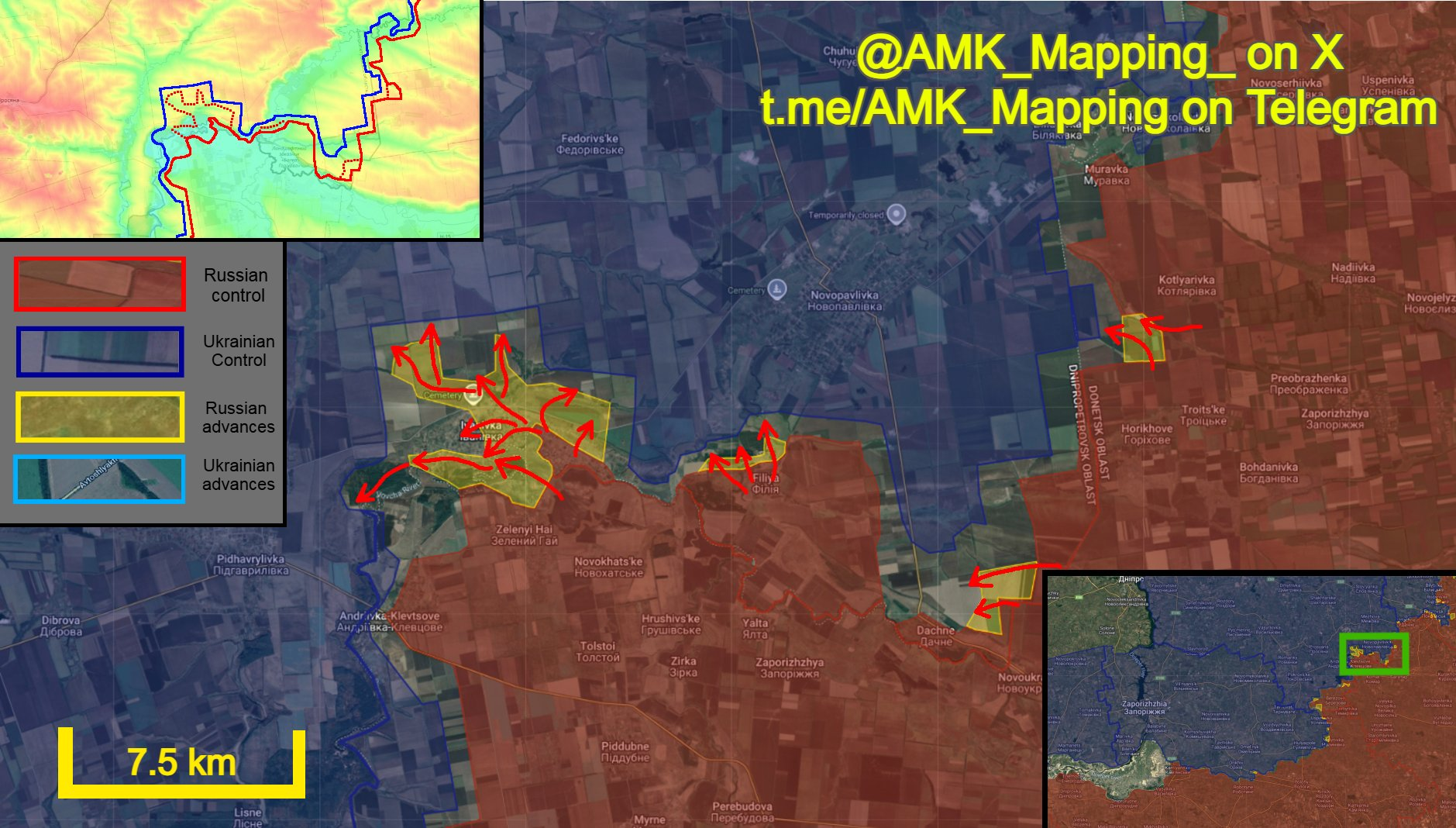 Quân Nga đang đột phá về hướng Novopavlivka. Đầu cầu bắc qua sông Vovcha của họ đã mở rộng nhanh chóng, buộc nhiều đơn vị quân đội Ukraine phải rút lui khỏi các vị trí kiên cố để tránh bị bao vây.