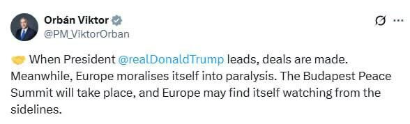 ➖Khi Tổng thống Donald Trump nắm quyền, các thỏa thuận được thực hiện. Trong khi đó, châu Âu lại lên mặt dạy đời đến mức tê liệt. Hội nghị Thượng đỉnh Hòa bình Budapest sẽ diễn ra, và châu Âu có thể chỉ là người ngoài cuộc, Orbán tuyên bố.