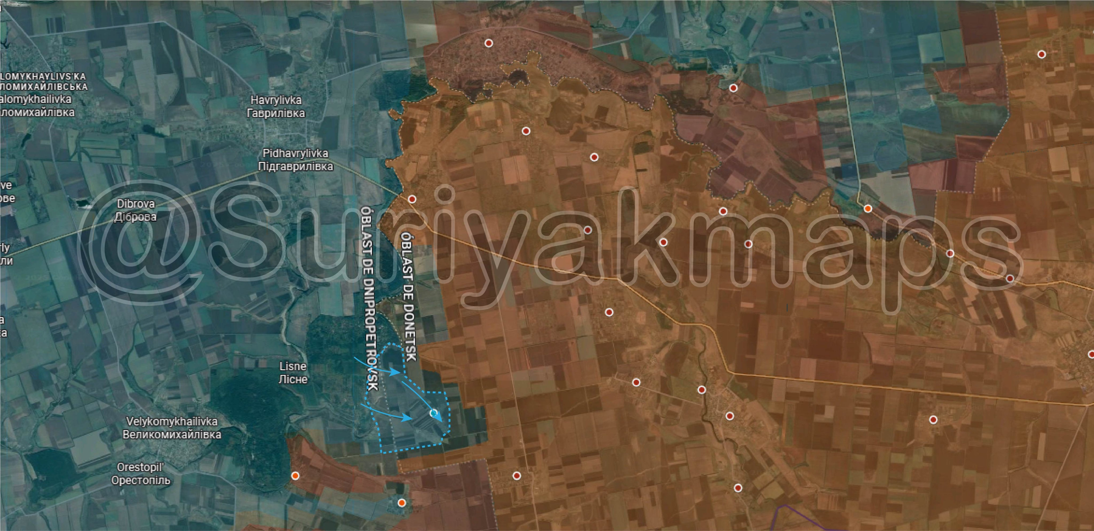 Tình hình mặt trận Velikomikhailovskaya: Quân đội Nga đã giành quyền kiểm soát hoàn toàn khu vực Zlahoda và thung lũng "Skotovataya Balka" tại biên giới giữa hai tỉnh Dnipropetrovsk và Zaporizhia. Ngoài ra, quân đội Nga cũng củng cố các vị trí của mình ở phía nam Yehorivka.
