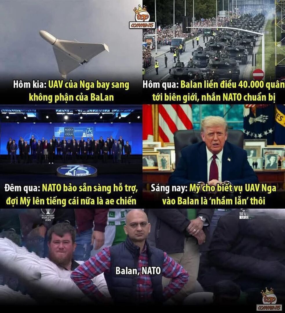 "Đó có thể chỉ là nhầm lẫn, nhưng dù sao tôi cũng không hài lòng với những điều xoay quanh toàn bộ tình huống đó. Hy vọng rằng chuyện như vậy sẽ kết thúc", Tổng thống Mỹ Donald Trump nói với các phóng viên hôm 11/9, đề cập vụ loạt máy bay không người lái (UAV) bay vào vùng trời Ba Lan trước đó một ngày.