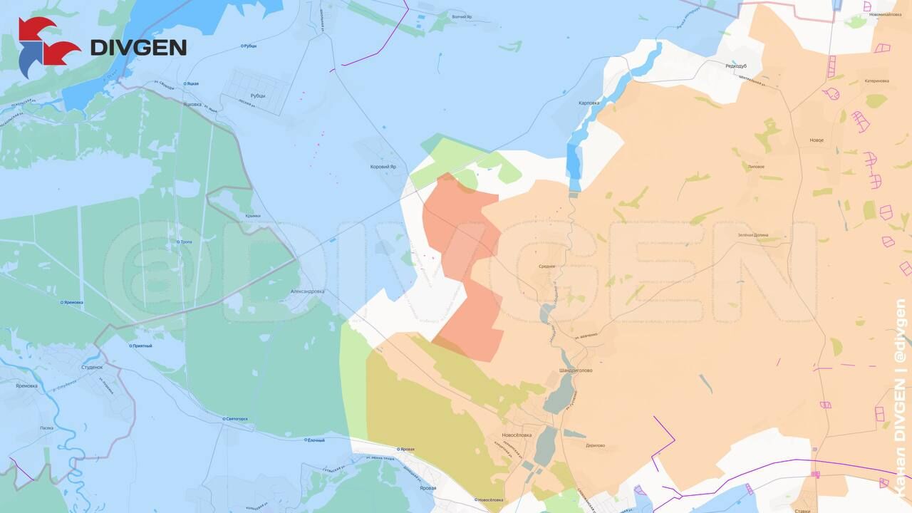 Phía trên thì Volchansk, Liman. Xuôi xuống phía dưới thì mở rộng các cụm thành gần Seversk, thành phố Kupiansk