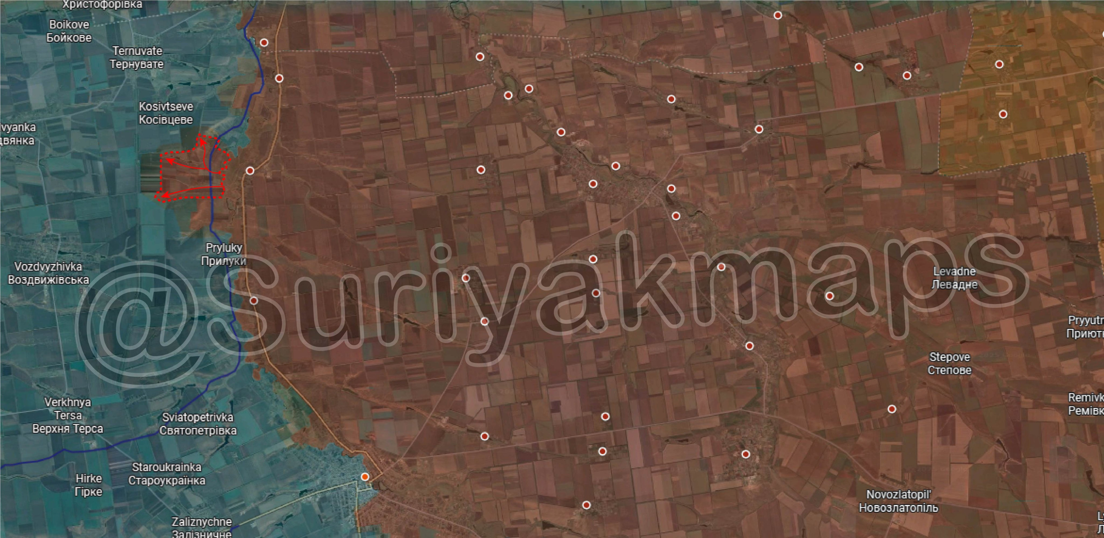 Tình hình trên mặt trận Huliaipole: Trong bốn ngày qua, Quân Đội Nga tiếp tục tăng cường đầu cầu ở phía tây sông Haichur và Dobropillya, kiểm soát các chiến hào mới dọc theo tuyến phòng thủ chính của Quân Đội Ukraine.