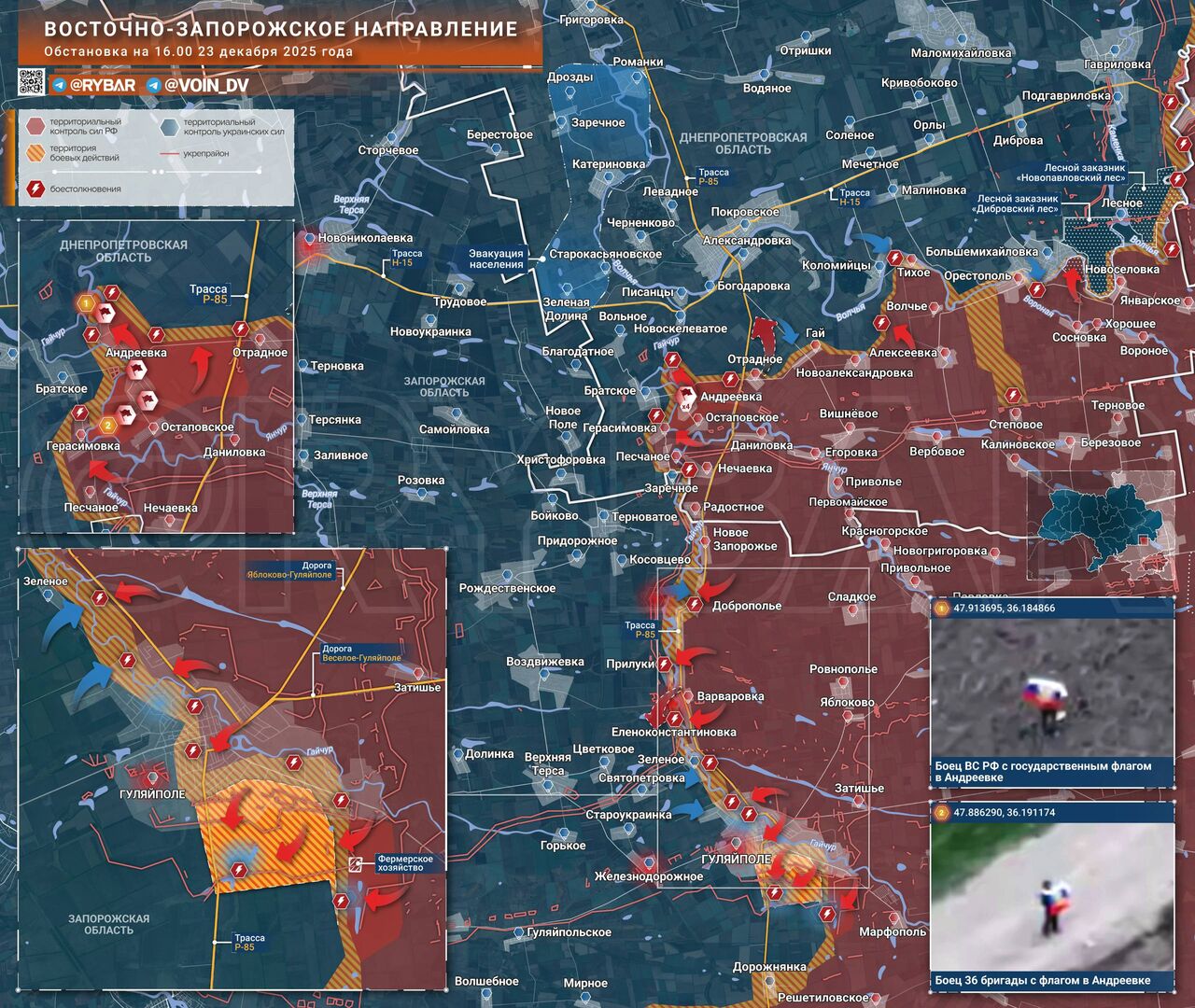 Trong khi đó, ở sườn phía nam, lực lượng Nga đang chọc thủng phòng tuyến của địch tại Hulyaipole. Gần đây, một số cứ điểm nữa gần một trang trại đã rơi vào tay lực lượng tấn công, và các nhóm tiên phong đã tiến sâu hơn ba ki-lô-mét vào phòng tuyến của Ukraine ở phía tây. Giao tranh ác liệt vẫn tiếp diễn ngay trong trung tâm thành phố.