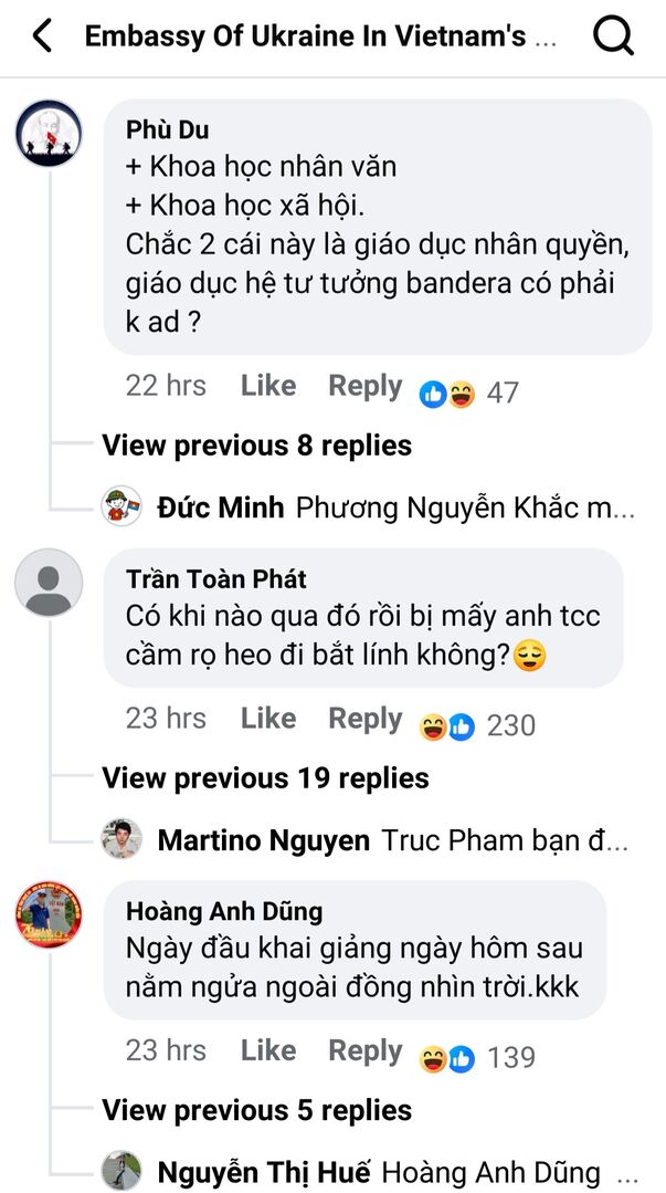 Thỉnh thoảng vào đọc còm trên FB của sứ quán U cà cũng hài hước phết