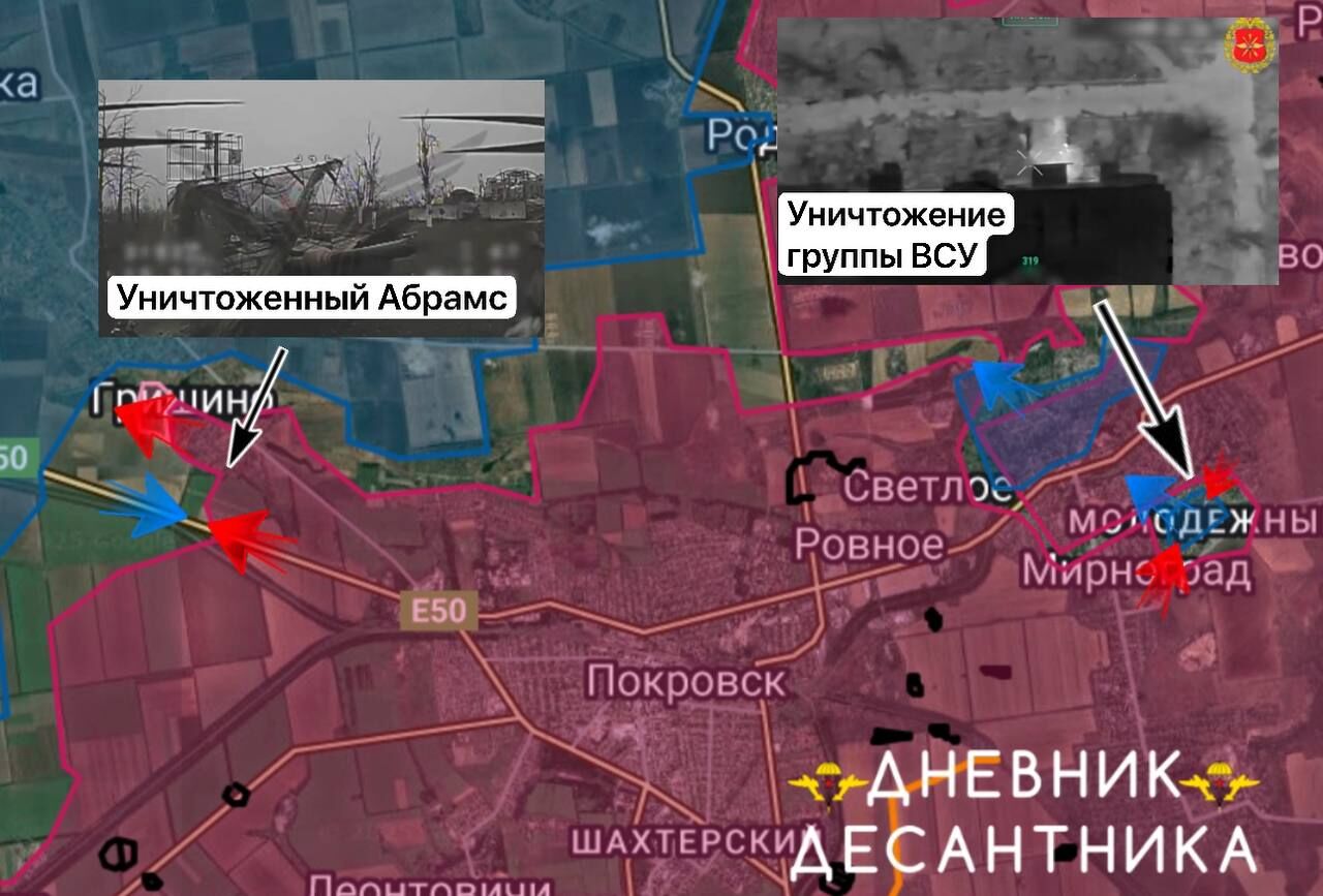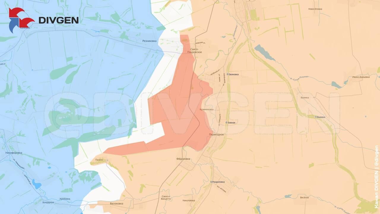 Chiến dịch giải phóng đang diễn ra ở phía nam Dimitrov. Tại Grishino, quân Nga đã tiến gần đến hồ, và ở phía tây Krasnoarmeysk, binh sĩ Lực lượng Vũ trang Nga đang phá hủy các xe bọc thép của địch trong các cuộc tấn công của Lực lượng Vũ trang Ukraine.