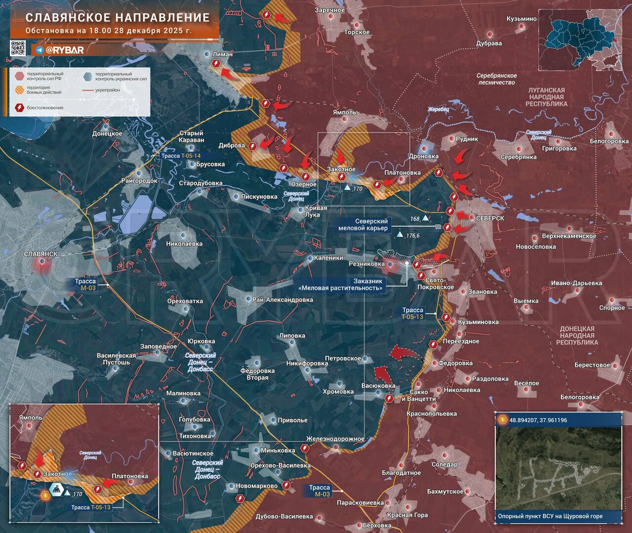 Theo các báo cáo hiện có, quân đội Nga đã tiến vào làng dọc theo sông Seversky Donets từ hướng Platonovka. Đồng thời, các cuộc đụng độ vẫn tiếp diễn ở vùng ngoại ô Yampol, nơi địch chiếm giữ một số vị trí trong các vành đai rừng.