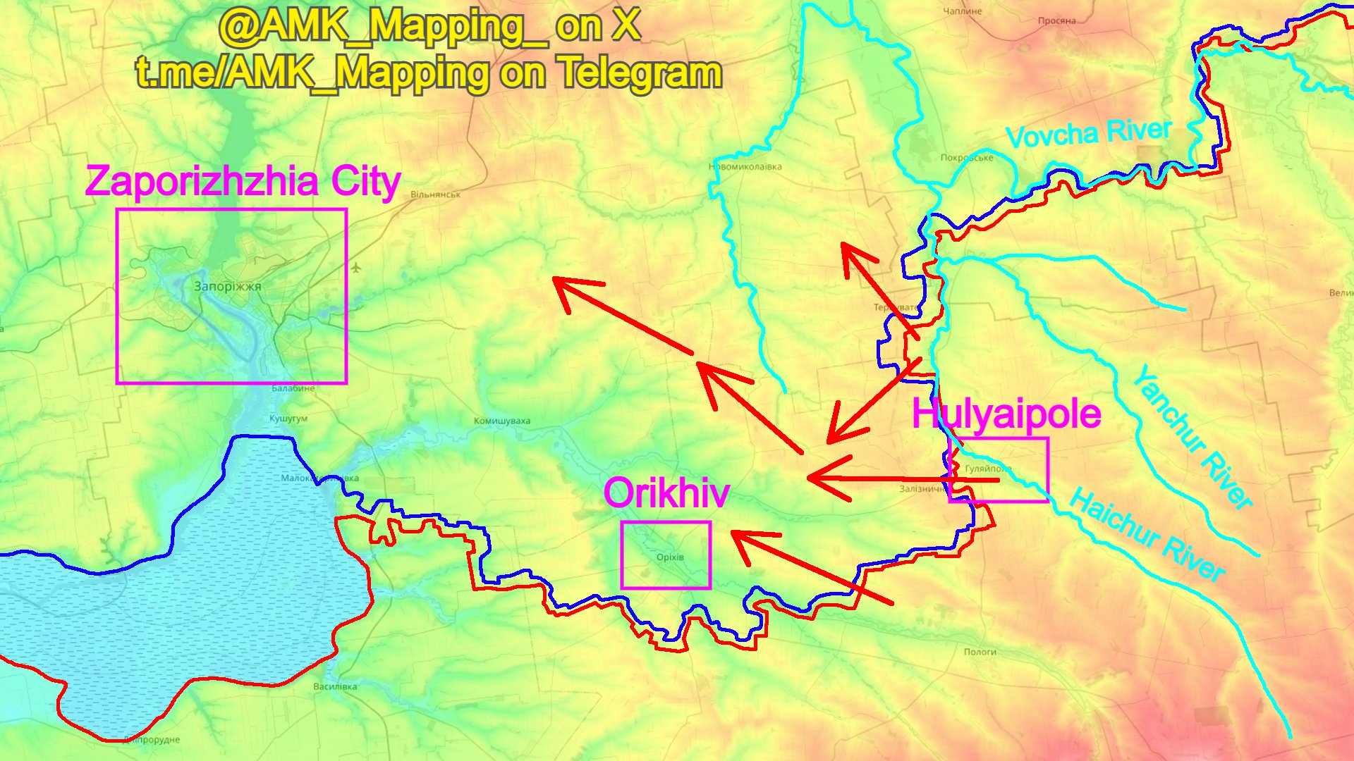 Điều này chỉ có thể thực hiện được khi Nga thiết lập được một đầu cầu lớn ở phía tây sông Haichur, vượt qua hai đầu cầu chiến thuật mà họ hiện đang nắm giữ ở khu vực Hulyaipole và Kosivtseve. Một khi đầu cầu này có thể bao trùm các vị trí chiến lược ở Zaliznychne và Ternuvate, con đường để đánh bọc sườn thành phố pháo đài Orikhiv từ phía bắc sẽ được mở ra.