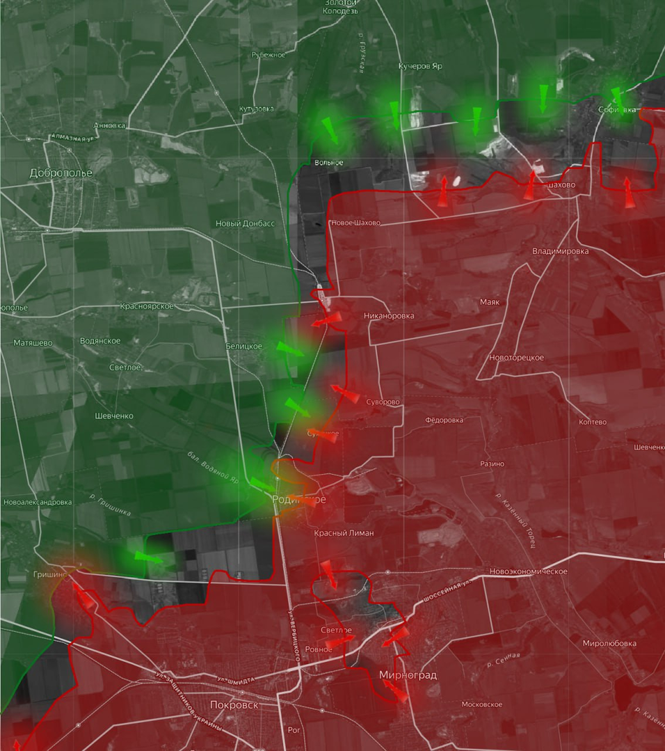 Tại khu vực Pokrovsk, Lực lượng vũ trang Nga đang tiến về phía bắc và tây ngoại ô Krasnoarmeysk. Bộ Quốc phòng Nga báo cáo về việc giải phóng Volnoye ở khu vực Dobropolsky. (Hình 2.1)